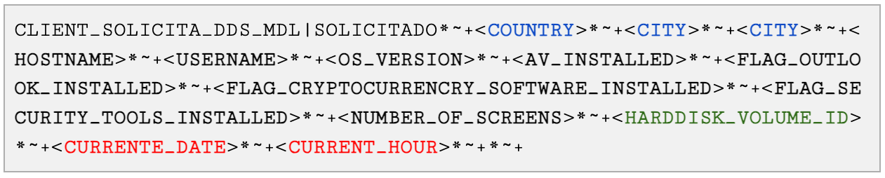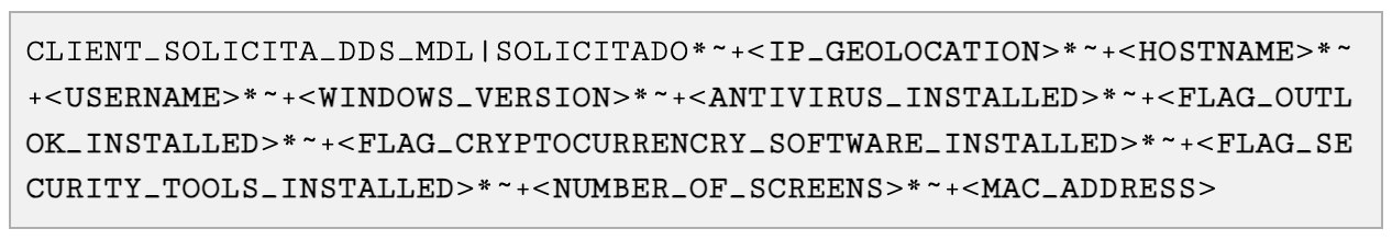 In September 2023, the Caiman downloader was updated to include new parameters in the collected system information (Figure 10). This includes the current date, the hard-disk volume ID and the country where the infected system is located. The country is obtained by querying the geolocation service ip-api<.>com.