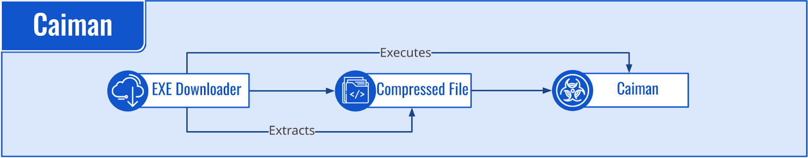 In January 2023, Caiman downloader samples were configured to use a dead-drop domain to retrieve the final payload. To obtain the payload, the malware performs the following steps: