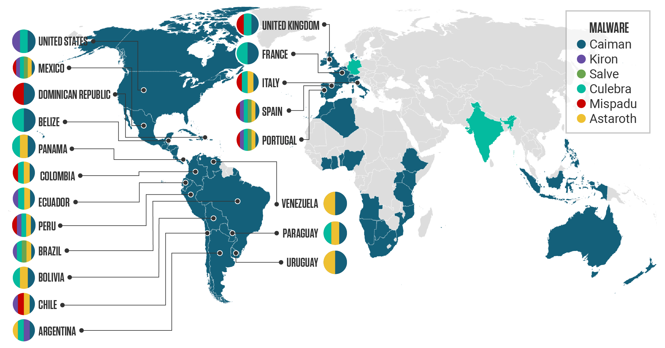 The various 2023 updates to Mispadu, Kiron, Caiman, Culebra, Salve and Astaroth indicate that these malware families are still active in the region and targeting users from several countries, even outside of LATAM.